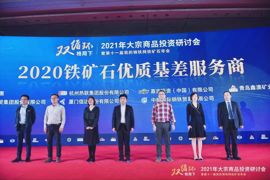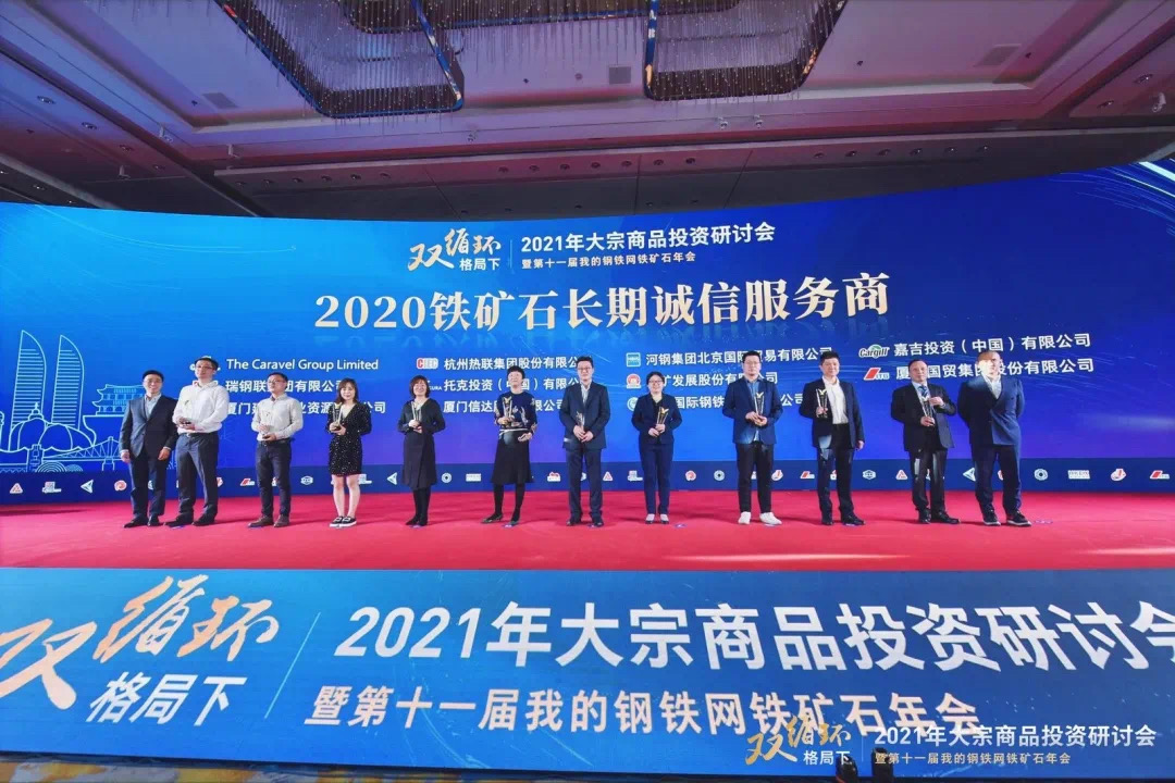 本次會議開幕儀式上,廈門信達憑借在鐵礦行業(yè)中的多年耕耘和誠信經(jīng)營,獲得“2020鐵礦石長期誠信供應商”、“2020鐵礦石優(yōu)質(zhì)基差服務商”兩項榮譽稱號。