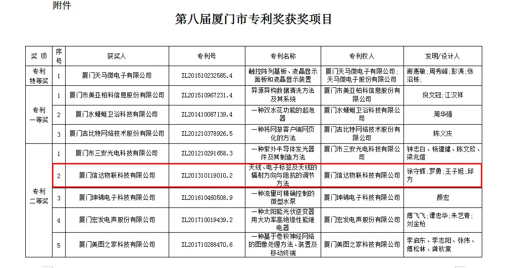 同期,信達(dá)物聯(lián)一款專利產(chǎn)品在激烈的競爭角逐中斬獲第八屆廈門市專利獎二等獎。這款獲獎專利電子標(biāo)簽產(chǎn)品在金屬、液體以及普通環(huán)境中都可正常使用,并且性能較為穩(wěn)定,實(shí)現(xiàn)了同一標(biāo)簽在不同應(yīng)用場景中的應(yīng)用。