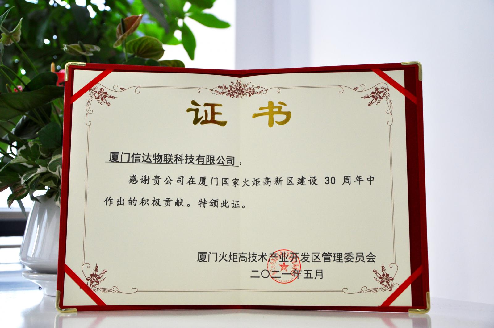 近日,廈門國家火炬高新區(qū)舉行建設(shè)30周年暨高質(zhì)量發(fā)展再動(dòng)員大會(huì),表彰了為高新區(qū)建設(shè)30周年突出貢獻(xiàn)者,其中包括30家“突出貢獻(xiàn)企業(yè)”、30家“科技創(chuàng)新企業(yè)”、30名“突出貢獻(xiàn)個(gè)人”。廈門信達(dá)物聯(lián)科技有限公司(以下簡稱“信達(dá)物聯(lián)”)獲評“科技創(chuàng)新企業(yè)”榮譽(yù)。